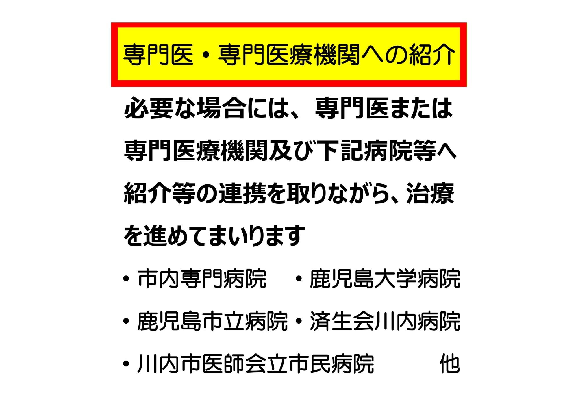 「いかに患者様に疾患をご理解いただき、安心・満足していただける治療を行っていけるか」 という事です。当院では、出来る限り、わかりやすい言葉で現在の病気の状態をお伝えし、今後の病状の可能性や治療の選択肢を説明させていただきます。